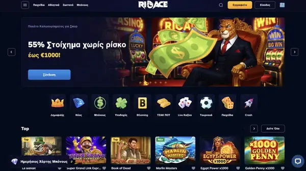 Καλώς ήρθες στο RioAce Casino, που λανσαρίστηκε το 2024 και έχει σχεδιαστεί για παίκτες που θέλουν ένα σύγχρονο site που παραμένει εύχρηστο. Εστιάζουμε στην Ελλάδα με υποστήριξη ελληνικής γλώσσας, πληρωμές σε EUR και ένα ευρύ μείγμα παιχνιδιών καζίνο και αθλητικού στοιχηματισμού σε έναν λογαριασμό. Στο καζίνο RioAce, μπορείς να επιλέξεις από 11.260 τίτλους, όπως κουλοχέρηδες, live τραπέζια, παιχνίδια crash και τζάκποτ, με μέσο RTP περίπου 96% σε όλο τον κατάλογό μας. Κρατάμε το layout απλό, ώστε να βρίσκεις παιχνίδια γρήγορα, να ελέγχεις τους όρους μπόνους και να φτάνεις στην υποστήριξη χωρίς περιττά βήματα.