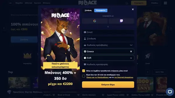 Η δημιουργία λογαριασμού σε εμάς χρειάζεται μόνο λίγα λεπτά. Πριν ξεκινήσεις, έλεγξε ότι τα στοιχεία σου ταιριάζουν με τη μέθοδο πληρωμής σου, γιατί αυτό βοηθά αργότερα όταν ζητήσεις ανάληψη. Αν έχεις ήδη λογαριασμό, χρησιμοποίησε τη σύνδεση RioAce από το επάνω μενού για πρόσβαση στο υπόλοιπο, τα στοιχήματα και την πρόοδο των μπόνους σου.